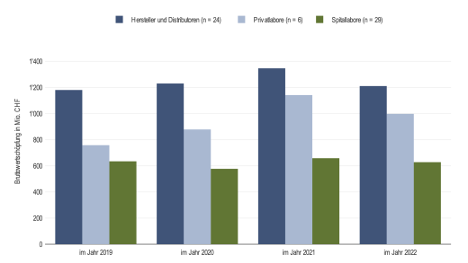Avec environ 12'000 employés, la branche a généré en 2022 une valeur ajoutée brute de 2,8 milliards de francs. La contribution de la branche à la maîtrise de la pandémie de Covid-19 se reflète également dans la création de valeur, qui a augmenté d'environ 17% en 2021 par rapport à l'année précédente et qui a de nouveau diminué en 2022.